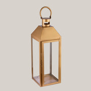 Elevate your decor with the Metro Luxe Lantern in Gold. This medium-sized metal lantern features a sleek gold finish and a modern, minimalist design. Ideal for adding a sophisticated touch to any space, it creates a stylish ambiance whether used indoors or outdoors.
