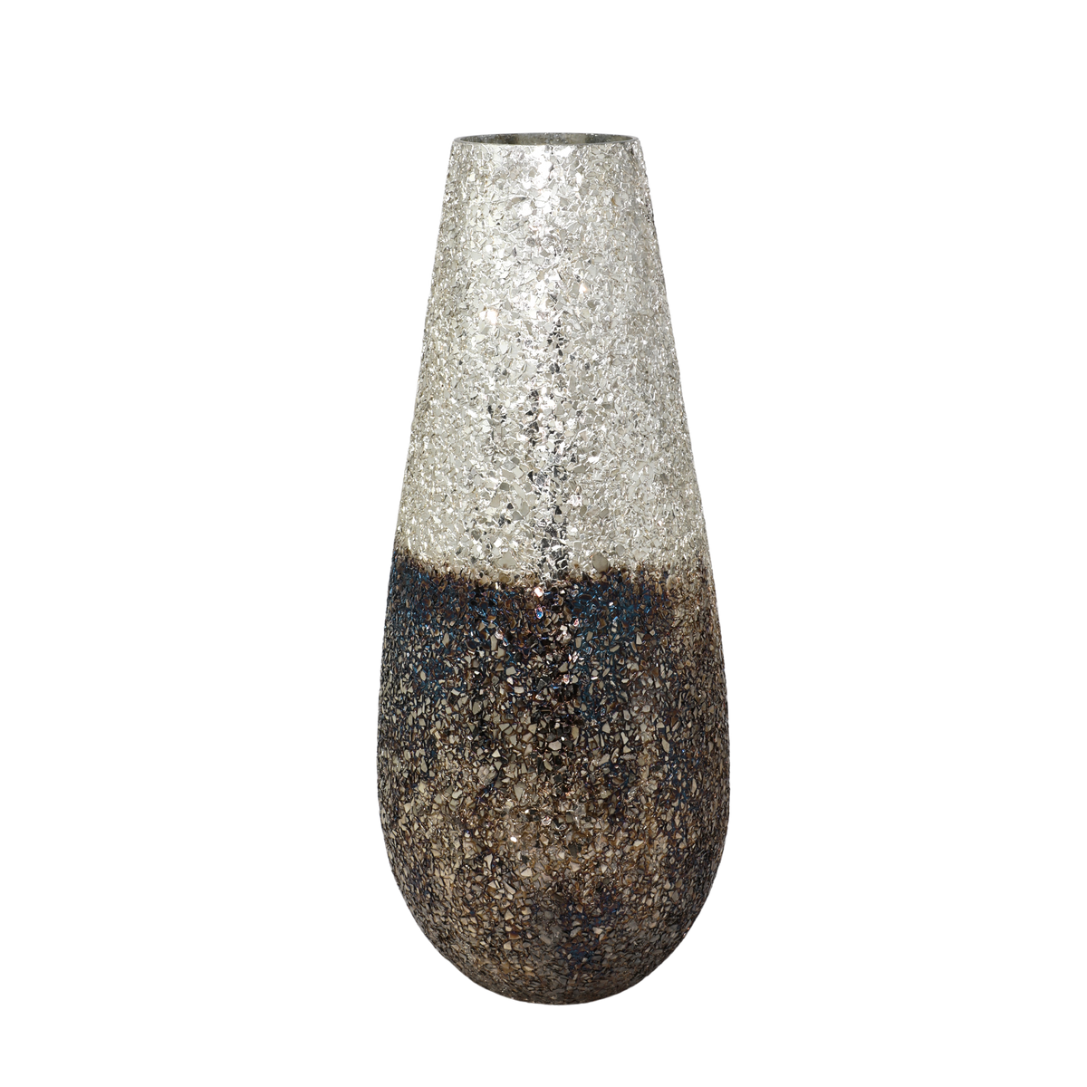 Introducing the Celestial Glow Vase- Blue Antique, a mesmerizing glass vase adorned with sparkling glitter work. This exquisite piece features a beautiful blue ombre effect, adding a touch of sophistication and glamour to any space.