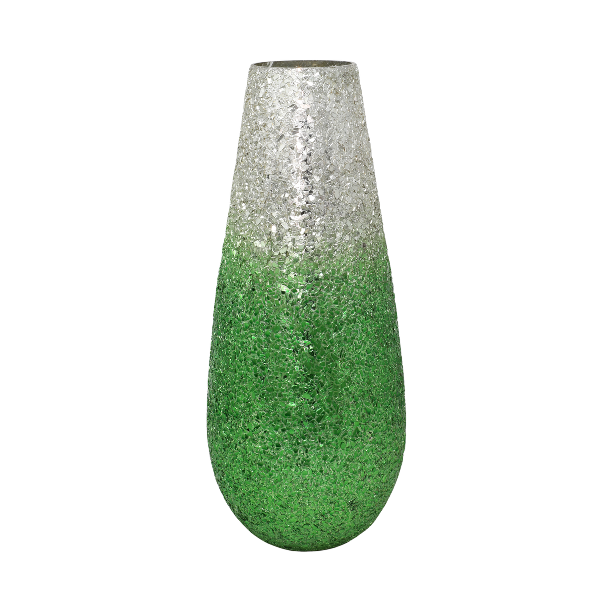 A stunning glass vase with a green hue and sparkling glitter finish. This elegant piece adds a touch of luxury to any space, perfect for flowers or as a standalone decor item.